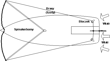 Skuteczne będą systemy oparte o dodatkowy mały żagiel przedni pracujący wstecznie lub przy fordewindzie żegluga na fokach bliźniaczych.