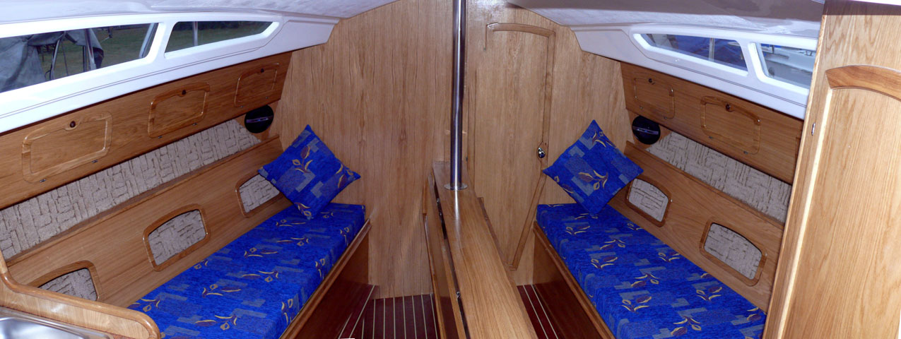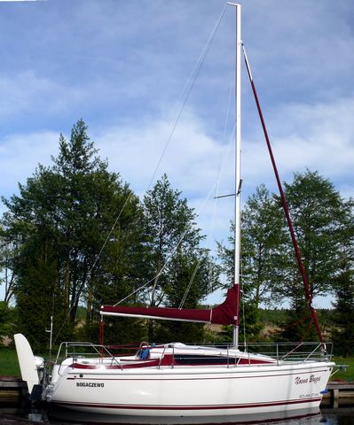 Wyposażenie dodatkowe: bramka do kladzenia masztu, sztywny sztag, roll fok, lazzy jack, instalacja wody - zbiornik, instalacja wody zaburtowej, radio, CD, mp3, lodówka, ogrzewanie, instalacja 230 V, oświetlenie kokpitu