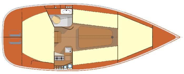Jego atuty to przestronne wnętrze, oddzielna koja dziobowa, obszerny kambuz, wydzielona kabina WC.
