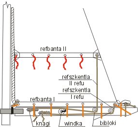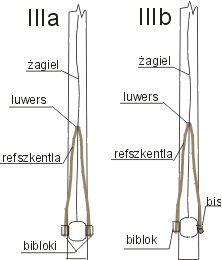 • refsejzingi - linki przechodzące przez remizki do wiązania żagla do bomu,