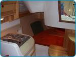 - komplet żagli: grot na pełzaczach, fok z rolerem na sztywnym sztagu, pokrowce bomowe z "Lazy Jacky'ami",sztormrelingi, bramka do opuszczania i stawiania masztu z wantami w osi obrotu, instalacja elektryczna 12V z akumulatorem, gniazdo 12V, prostownik, przedłużacz 230V - 15 m, gniazdo 230V, stacjonarny zbiornik na wodę 40L, tent na bom, komplet środków ratunkowych, gaśnica