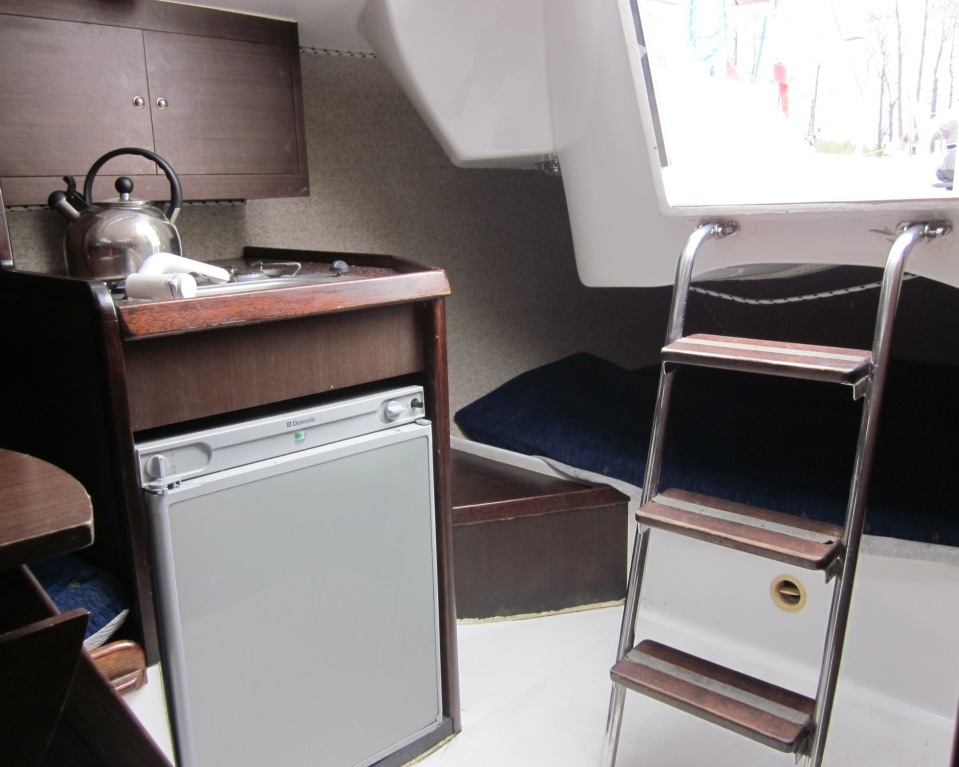 Wyposażenie dodatkowe: bramka do kladzenia masztu, sztywny sztag, roll fok, instalacja wody - zbiornik, radio, mp3, lodówka, ogrzewanie, instalacja 230 V