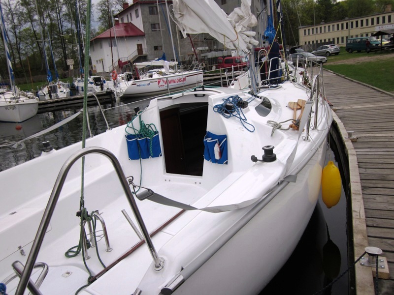 Wyposażenie dodatkowe: bramka do kladzenia masztu, sztywny sztag, roll fok, radio, instalacja 230 V