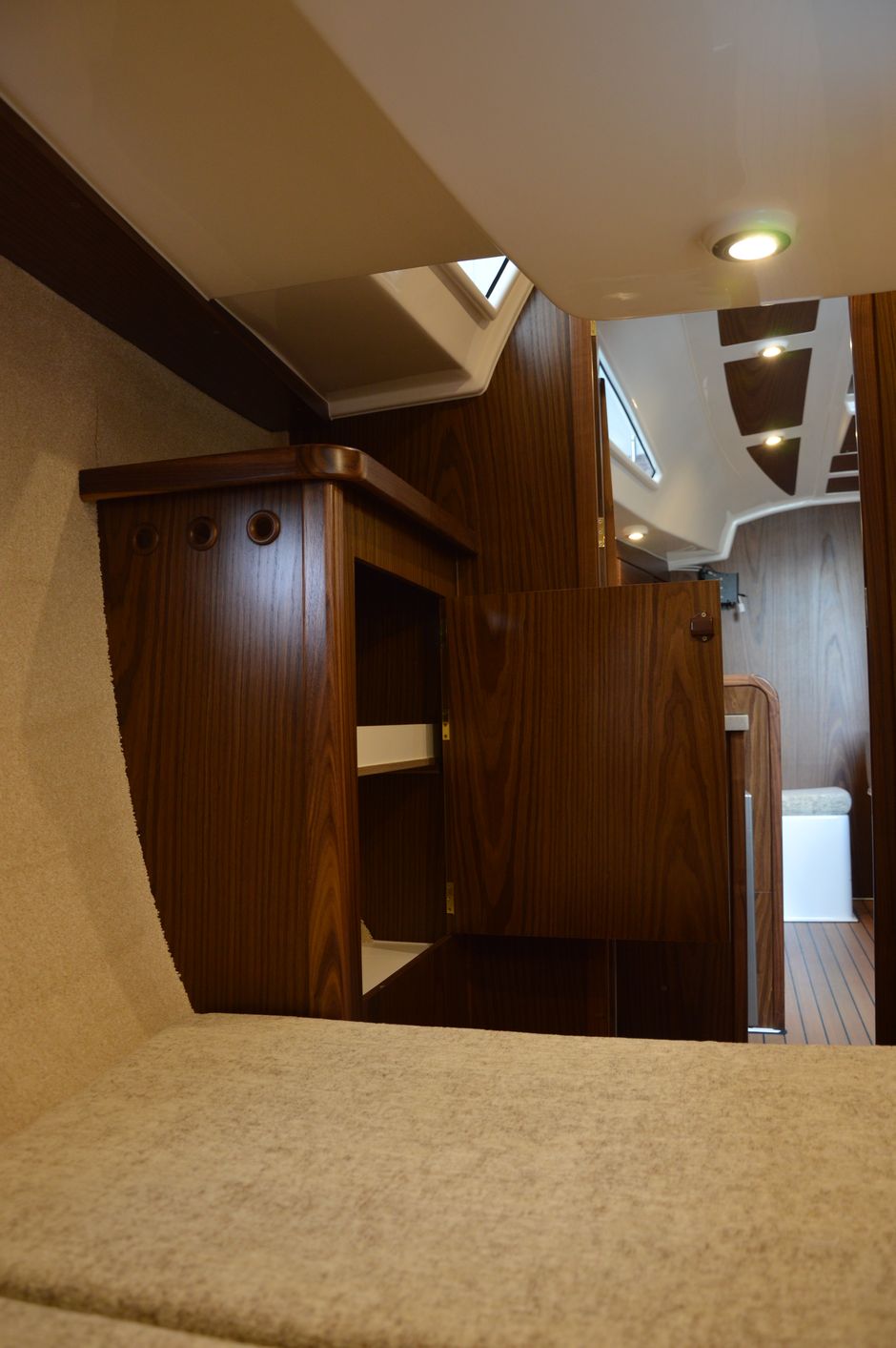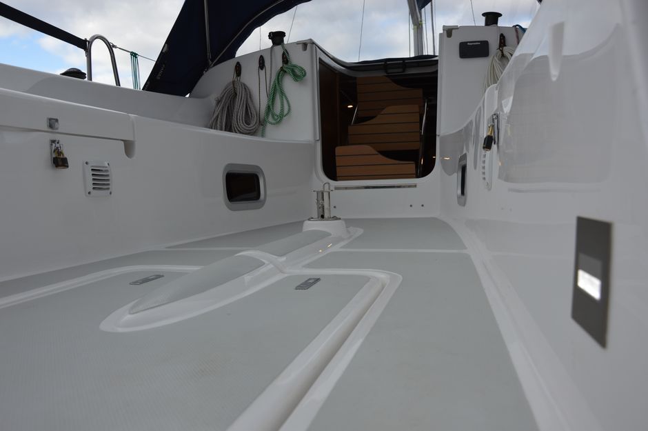 Atrakcyjna, dynamiczna sylwetka jachtu połączona z ergonomicznym ukształtowaniem pokładu oraz dopracowanymi detalami jest odzwierciedleniem dyskretnej elegancji. Podwyższona stateczność poprzeczna pozwala na zwiększenie powierzchni ożaglowania i prędkości przy słabszych wiatrach dając również poczucie komfortu i bezpieczeństwa w trudniejszych warunkach. Kształt kadłuba został zaprojektowany w sposób umożliwiający osiągnięcie wysokich prędkościoraz manewrowości i lekkości prowadzenia dające prawdziwą radość z żeglugi.