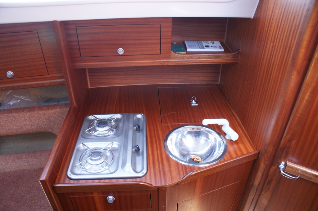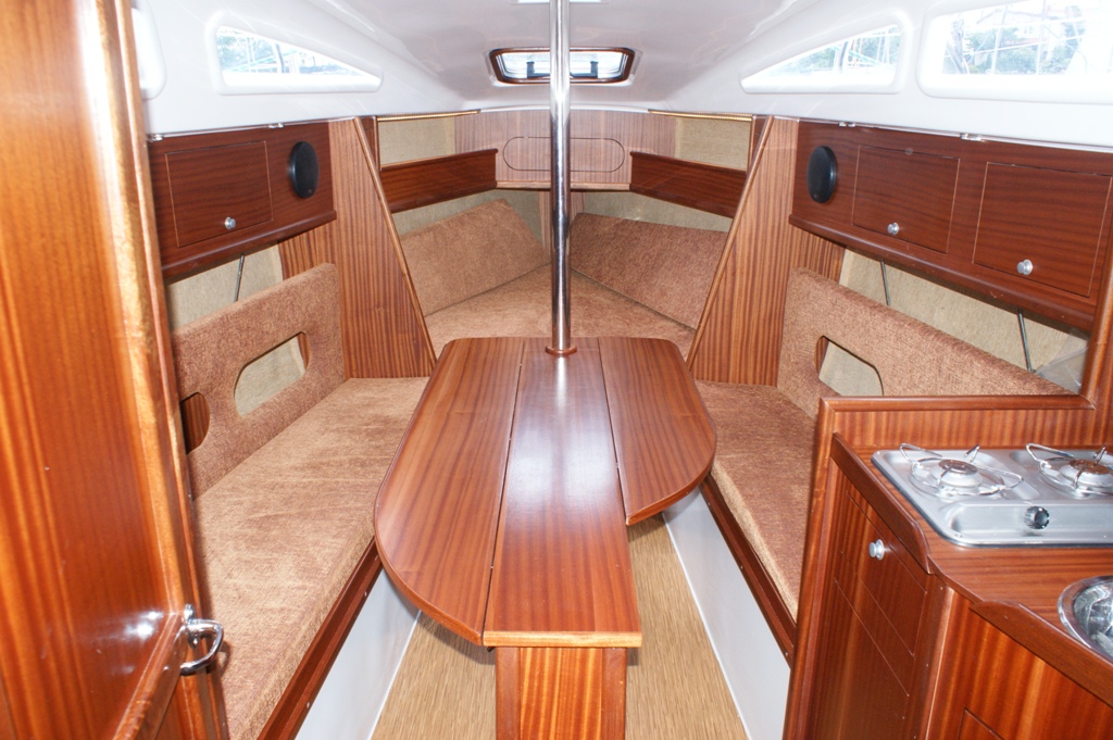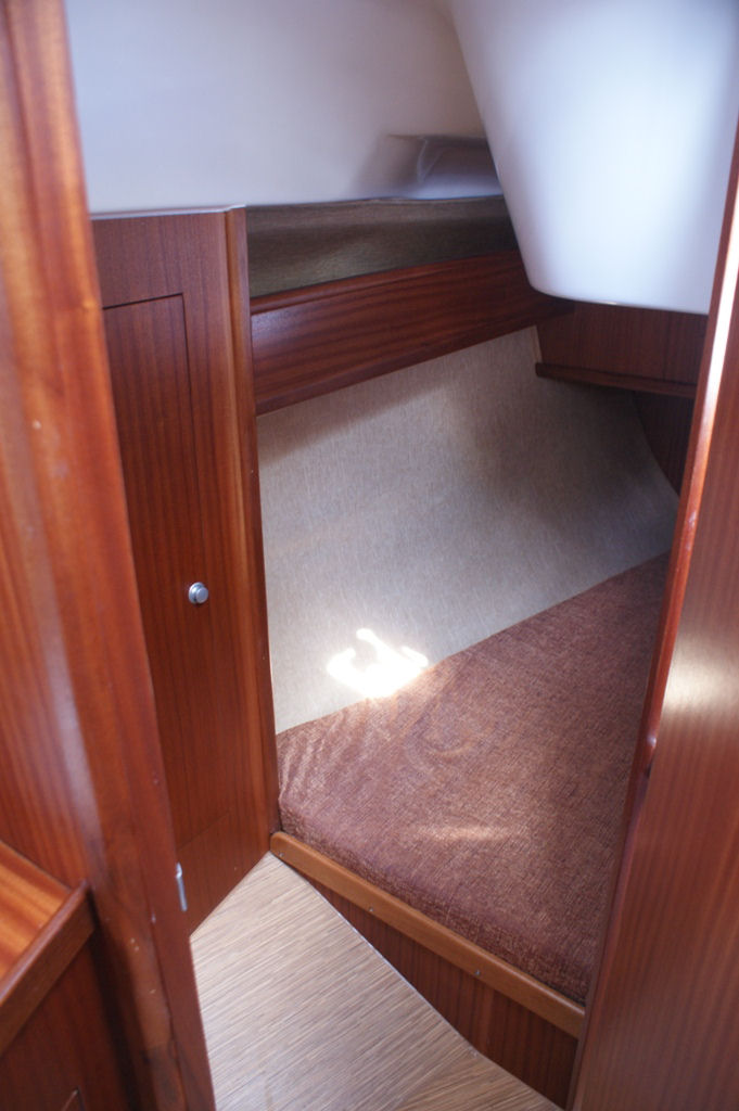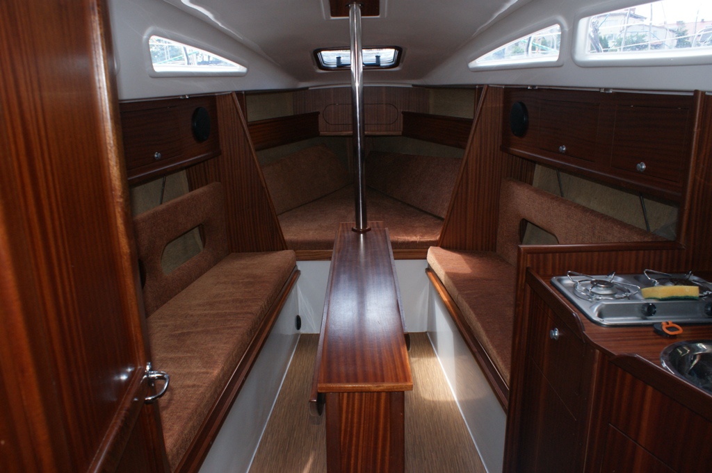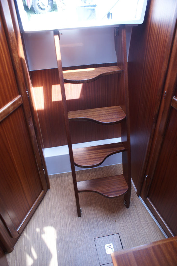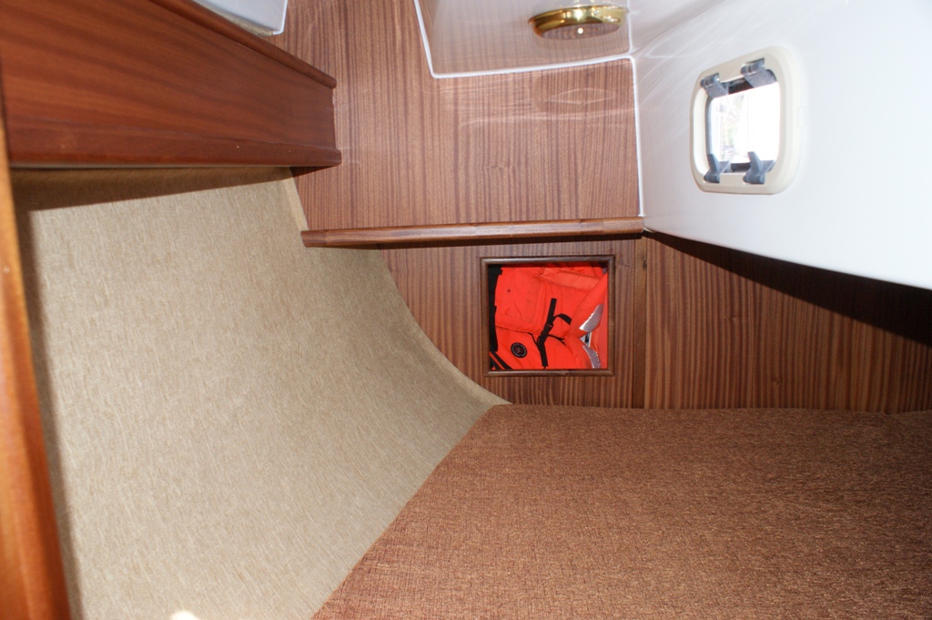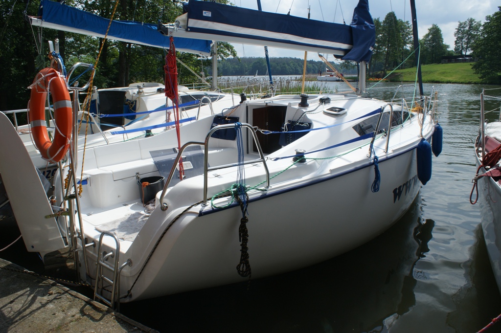 Wyposażenie dodatkowe: bramka do kladzenia masztu, sztywny sztag, roll fok, lazzy jack, instalacja wody - zbiornik, radio, lodówka, ogrzewanie, instalacja 230 V