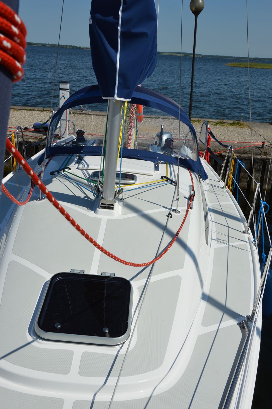 Atrakcyjna, dynamiczna sylwetka jachtu połączona z ergonomicznym ukształtowaniem pokładu oraz dopracowanymi detalami jest odzwierciedleniem dyskretnej elegancji.Podwyższona stateczność poprzeczna pozwala na zwiększenie powierzchni ożaglowania i prędkości przy słabszych wiatrach dając również poczucie komfortu i bezpieczeństwa w trudniejszych warunkach. Kształt kadłuba został zaprojektowany w sposób umożliwiający osiągnięcie wysokich prędkości oraz manewrowości i lekkości prowadzenia dające prawdziwą radość z żeglugi. Zamieszczone zdjęcia są zdjęciami poglądowymi. Jacht będzie wyglądał identycznie jak Antilia 26CC - Martinique. Wyposażony dodatkowo w echosonde B&G i prysznic w kokpicie.