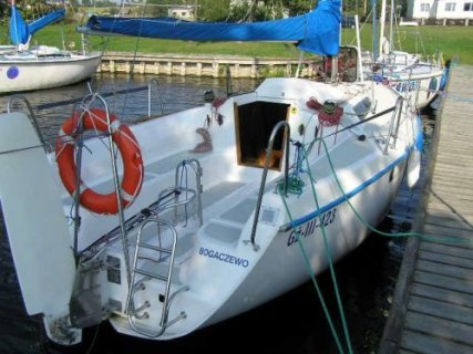 Przestronny, wygodny kokpit z dostępem do wody, łatwość składania i stawiania masztu, sprawdzony system podnoszenia miecza, zwrotność, duźe wielofunkcyjne kabestany, "Lazy jack", moźliwość prowadzenia przez jedną osobę oraz cichy czterosuwowy silnik to niewątpliwe zalety tego jachtu. Dzięki małemu zanurzeniu i "otwartej rufie" łódka dotrze do kaźdego brzegu.