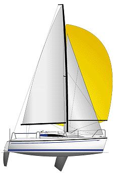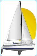 • żagle: grot pełnolistwowy na pełzaczach, fok z rolerem, sztywne sztagi